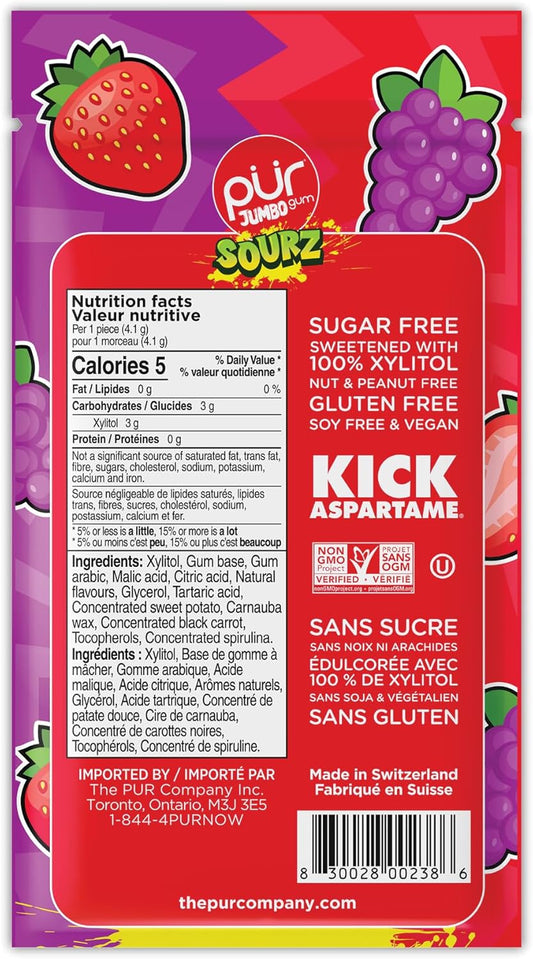 PUR Jumbo SOURZ Gum, Strawberry & Grape
