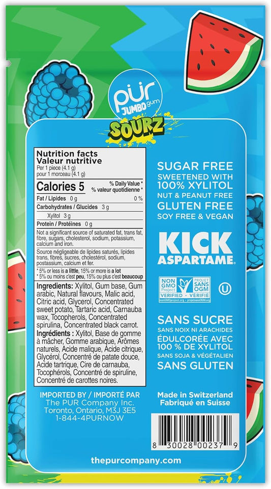 PUR Jumbo SOURZ Gum, Blue Raspberry & Watermelon