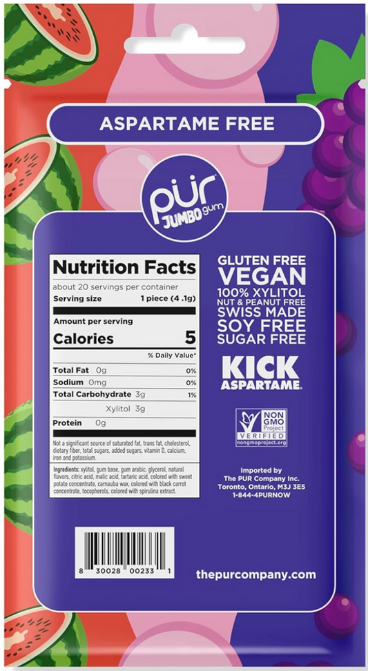 PUR Jumbo Gum Grape, Bubblegum, Watermelon