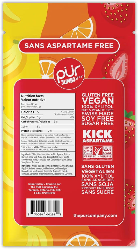 PUR Jumbo Gum Strawberry, Orange, Banana