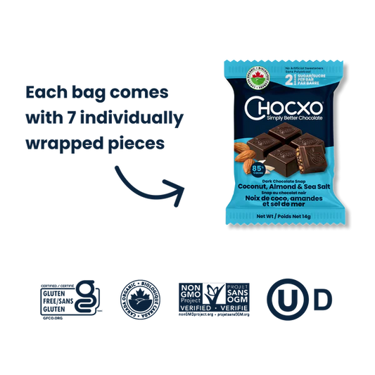 Chocxo Dark Chocolate Coconut, Almond & Sea Salt Snaps (Org)