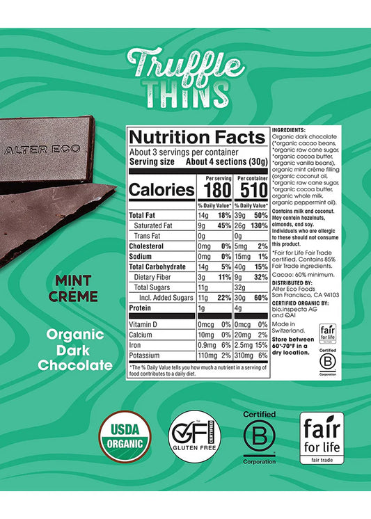 Alter Eco Truffle Thins Mint Creme Dark Chocolate Organic FT