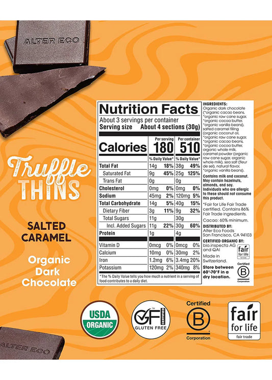 Alter Eco Truffle Thins Salted Caramel Dark Chocolate Organic FT