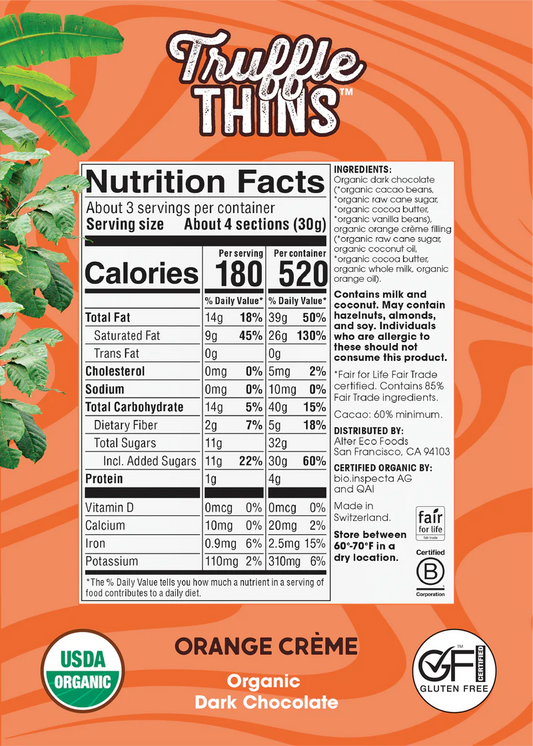Alter Eco Truffle Thins Orange Creme Dark Chocolate Organic FT