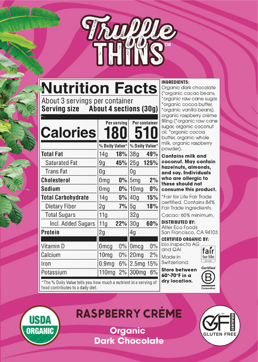 Alter Eco Truffle Thins Raspberry Creme Dark Chocolate Organic FT