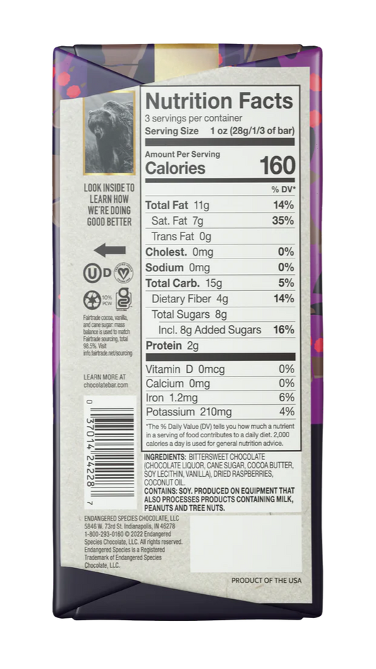 Endangered Species Raspberries Dark Chocolate Bar (FT)