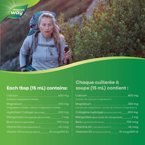 Nature's Way Calcium & Magnesium is formulated in a 2:1 Calcium to Magnesium ratio in a great tasting orange liquid formula. It helps in the maintenance of bones and teeth. It also contains bone-friendly ingredients Collagen, Manganese, Boron, Vitamin K2 and Vitamin D3.