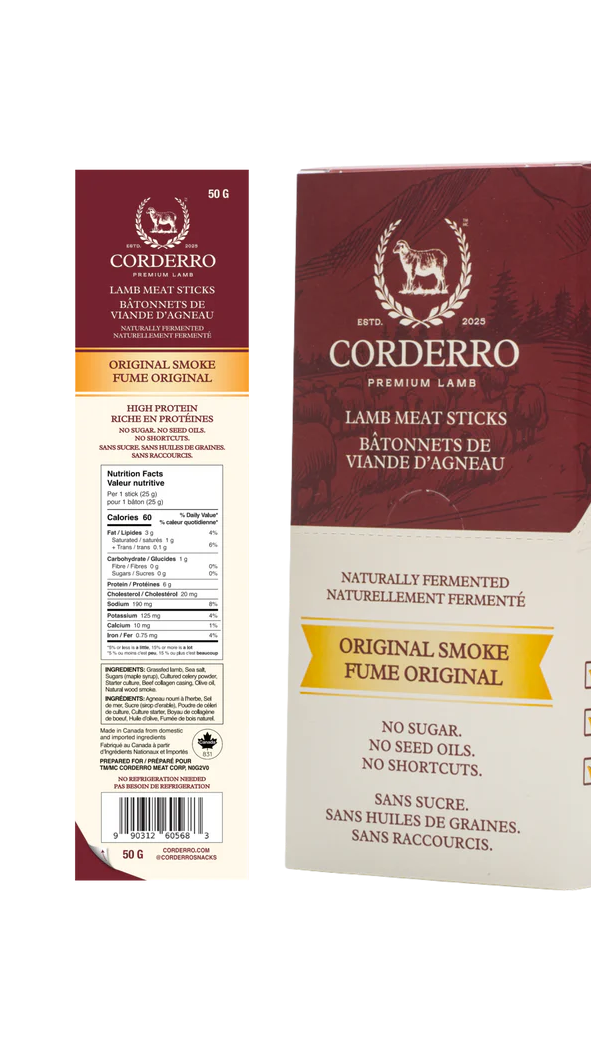Corderro Lamb Meat Sticks are a mouthwatering snack crafted for those who crave bold flavors and high-quality ingredients. Each stick is made from carefully selected lamb cuts, seasoned with a blend of spices, and naturally smoked for that irresistible taste.