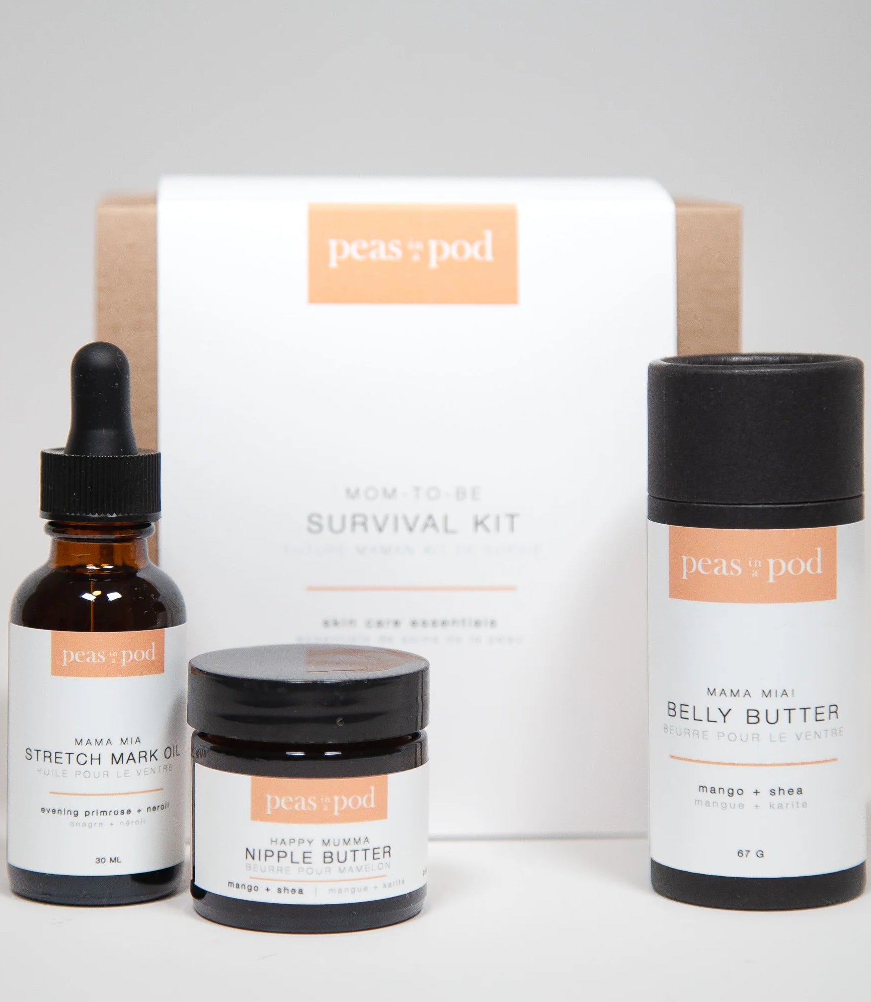 This convenient kit includes three of our signature mom-to-be products, all crafted from the purest natural ingredients, to ensure the very best for an expectant mama's skin. Mama Mia! Belly Butter 67 g | Mama Mia! Stretch Mark Oil 30 mL | Happy Mumma Nipple Butter 25 g
