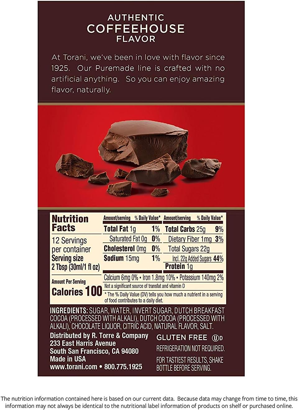 The nutrition information contained here is based on our current data. Because data may change from time to time, this information may not always be identical to the nutritional label information of products on shelf or purchased online.