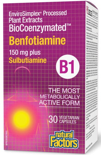 Natural Factors BioCoenzymated Benfotiamine represents the next generation of nutritional supplements, providing 150 mg of highly bioavailable coenzymated vitamin B1 in the form of benfotiamine, alongside sulbutiamine, as well as Farm Fresh Factors® for advanced absorption to support nerve function and energy metabolism.