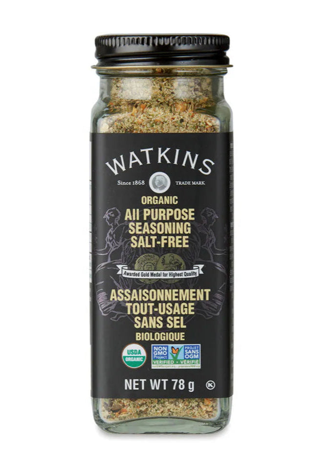 Watkins Organic All Purpose Seasoning brings a feisty blend of flavor to your favorite dishes without any salt. Try with chicken, beef, vegetables or salads.